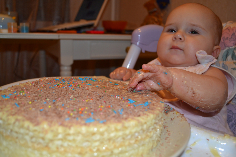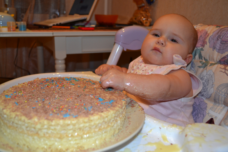 Потом папа кушал тортик, а я отмывала липкое тело, которое неожиданно оказалось моим ребенком, стул, стол и одежду... Но это оказалось не так сложно, как я ожидала))) Да и результат того стоит!)