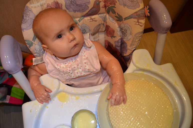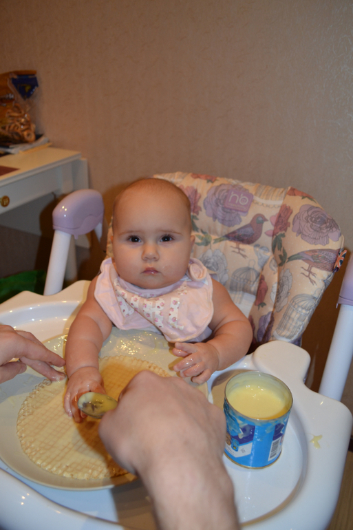 Дочке процесс понравился ужасно, я не могла ее дозваться, чтоб она обратила на меня внимание и посмотрела в камеру! Сразу просекла, что надо макать руку в сгущенку и намазывать на корж. А сгущенка такая липка и тягучая оказалась - просто класс! А коржи на ощупь жесткие и рифленые - тоже необычно!