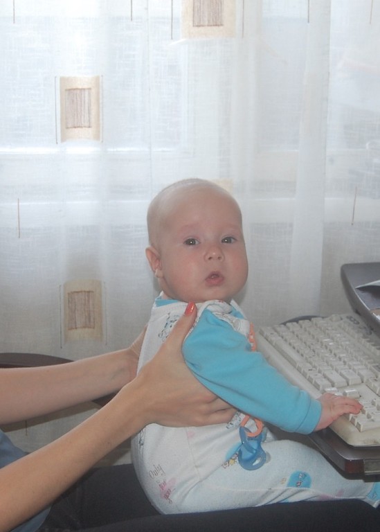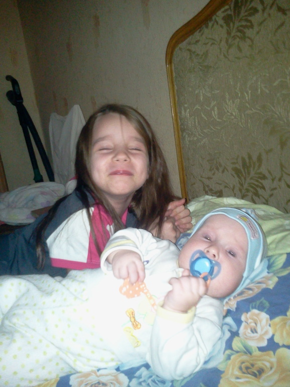 ХвастаемсяНу вот нам завтра 26 будет 5мес. Рост вес примерный 8 кг и 65 см. В больничку только в четверг. Из умелок ничего сверхестественого. Прошли курс масажа в этом месяце изменений кординальных я не увидела,точнее ничего не изменилось. В этом месяце покрестили сыночка,все прошло отлично даже не плакали. Потом мы заболели сопливили,ьеперь у нас помойму лезут зубы,ночами спим ужасно,днем мин по 30 два или три раза и все. Лежать вообще не хочет,только когда на живот положишь полежит мин 10 потом орет если есть настр то сам переернется. На живот не переворачивается хотя если держишь за попку то повернется. Лентяй одним словом. Любит только что бы его носили целыми днями на ручках все всегда во рту. Если что то не влазиет или не получается положить в рот начинает психовать и орать. Психует по любому случаю это ор дрыганье ногами. Были у невролога сказал что все ок. Просто характер у нас такой ну и ЗУБЫ которые с двух мес лезут все не вылезут. Обо мне. Я зомби. Наст ноль, все ще живем у мамы ,муж отдельно. Из за этого ругаемся постоянно. Приезжает конечно помогает,но это все не тоооо. Я хочу домооой!!! Начали ругатся с мамой!!! Складывается впечатление что мы ей надоели! И из за этого еще обиднее. Переехать пока не могу тк дочу надо в школу водить, а машину продали и возить не получиться((( дни проходят не интересно однообразно! Иногда пролетают как один миг,а иногда тянутся как вечность. Радует только улыбка сынули. Мы пока на гв прикорм не начанали,были клнечно попытки,давала яблочко ел хорошо. Но сейчас у нас зубы на ночь пьем обезбалевающее и из за этого у него болит живот. Какойто замкнутый круг получается,то живот ,то зубы,то сопли. Новые звуки издает, смеется классно так,любит качатся на качели со старшей, во всю его присаживаю,тк целый день 8 кг таскать руки отваливаются,но все равно спинку держу,любит на кухне за столом сидеть и расбрасывать конфеты))) нашли ноги свои,точнее давно нашли,но наш ленивый образ жизни... сейчас активно их трогаем дергаем, любит до безумия дергать старшую за волосы))) аж песни поет от восторга. Я не могу никуда выйти без него сразу ор,маминкий сынок растет. Один раз на 3 часа уходила ему за покупками и все, мечтаю все таки попасть в салон покрасится и подстричься. Целый день сидим дома гуляем редко тк в коляске не сидим не лежим и тд, ну а на руках тоже особого не разгуляешься,особенно сейчас во всех одежках. Сама как капуста и ребенок такой же)))