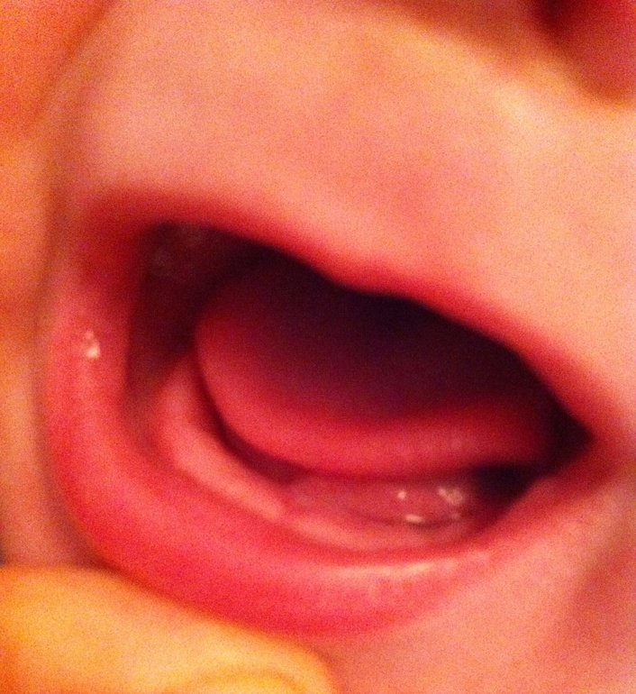 ЗубыВот такая ситуэйшн у нас третий день. Ребенок капризный, спит чутко (хотя раньше грохотать из пушки можно - не проснется), да и вообще он каждый день разный, то сонный, то вообще не успокоить . Я уже не знаю что и думать, когда заглядываю ему в рот, потому что зуюы у нас идут уже два месяца. Ну так вот на фото видны две полоски, в жизни еще сильнее видно. На ощупь десна рыхлая и неровная. Вот и все симптомы. Ну собственно и вопрос - похоже на растущие зубы?