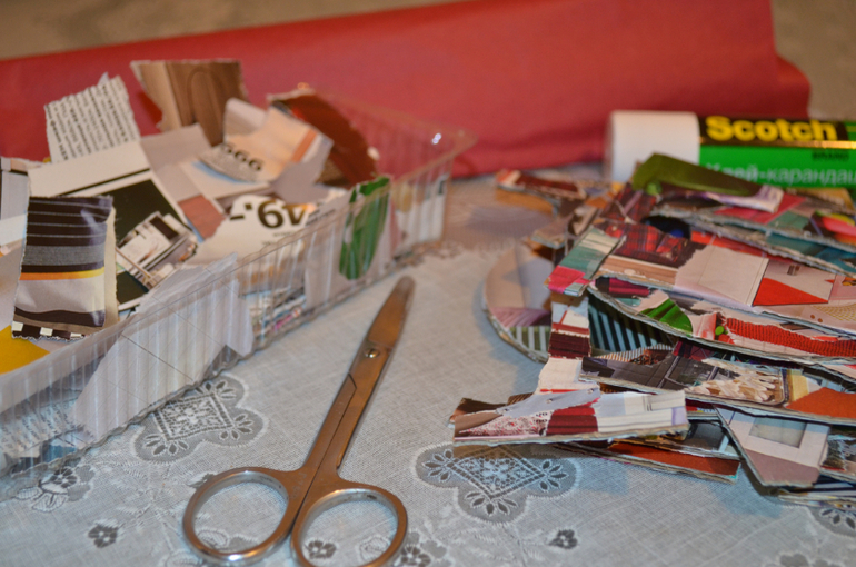 В их создании был использован картон от коробок из под Pampers, яркие листы каталога Икея, клей ПВА и ...кухонные ножницы (очень уж крепкий картон, оказался).