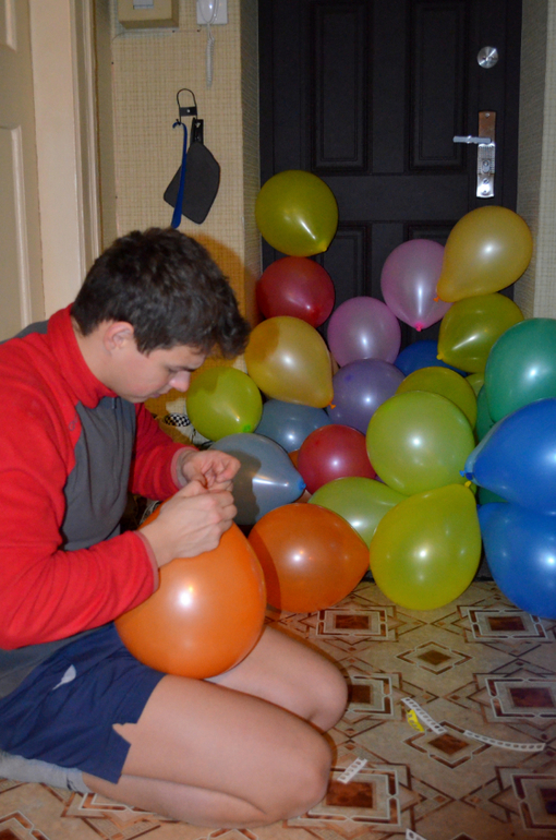 Не стала брать какую-то отдельную тему, остановилась на яркости и преобладании цветов радуги. Муж героически надул 50 шаров.