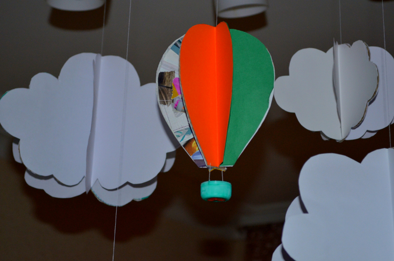 ☆ Сделала объемную декорацию, ставшую для Димы одной из любимых игрушек. О ней я уже писала. Скажу только, что в этой простой штучке заключалось много интересного и важного. Дима через некоторое время стал сам на всё дуть, а однажды, размышляя о жизни за завтраком, обнаружил, что семечки на деревьях колышутся и сделал вывод, что на них дуют (показал на них пальцем и дул). У меня уже накопилось несколько идей, развивающих тему ветра.
