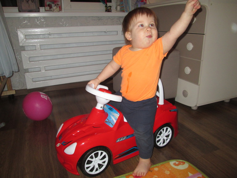 спасибо, Анют)) сама не нарадуюсь! хоть немного сам себя может занять. Хотя, хитрюга просек, что когда мама катает, оно легче и интересней))