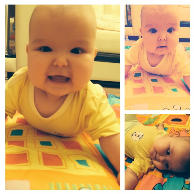 Мия-жизнерадостный спокойный лисенок;) После пройденного курса массажа стала активнее, ползает назад и почему-то по кругу, шатается на четвереньках,жует руки, разговаривает на своем, хочет уже сесть,следит за всеми и обязательно разглядит с ног до головы одежду у каждого ( похоже мама тут постаралась),сказали нам ждать через две недели полный эффект от массажа, поэтому в поликлинику пойдем позже.