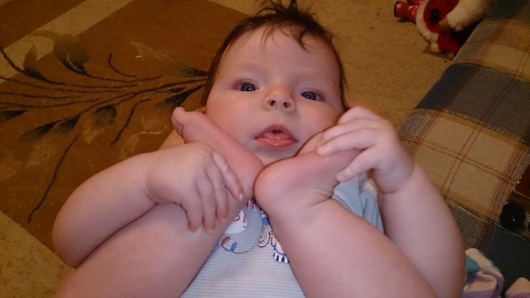 Ах да еще она нашла свои ножки и сейчас лежа попеременке берет их в рот,это вообще прикол, насасывает их с большим удовольствием)