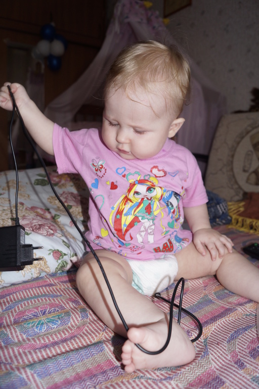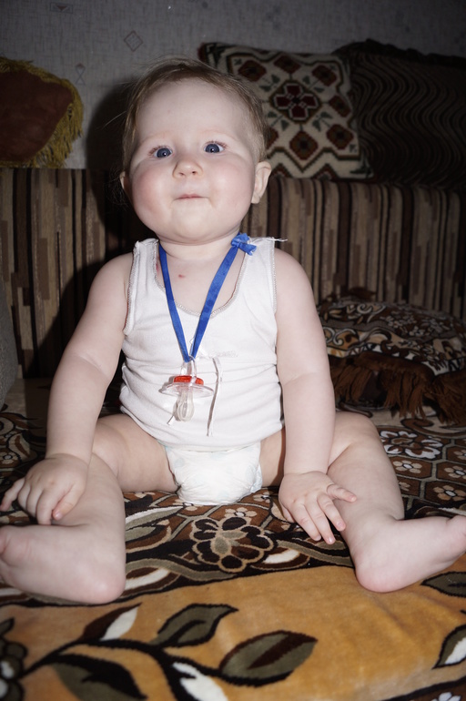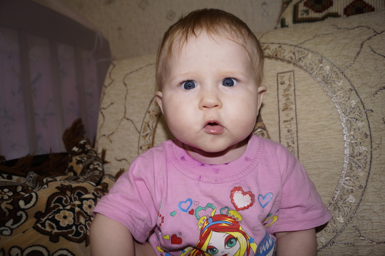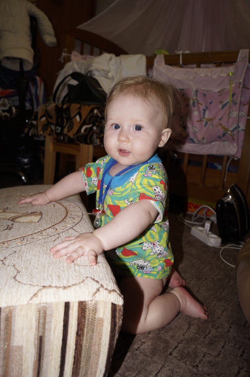 За этот месяц у нас вылезло аж!!!!! 3 зуба. Теперь у нас их 6. Радовалась я, что ниразу кошка моя не летала с дивана... Ан нет, не тут-то было.... Лежали мы со старшим сыном в больнице на плановой операции на ногу, а доча была с бабушкой ( моей мамой). И прямо перед нашей выпиской она скаканула... Бабуля не углядела немного. Но всё в порядке, ни синяка, ни испуга. Так что принимайте и нас в ряды парашютистов!!!!!! На дом к старшим детям приезжал невролог. Ну и козочку нашу глянул. Всё в соответствии с возрастом!!!!