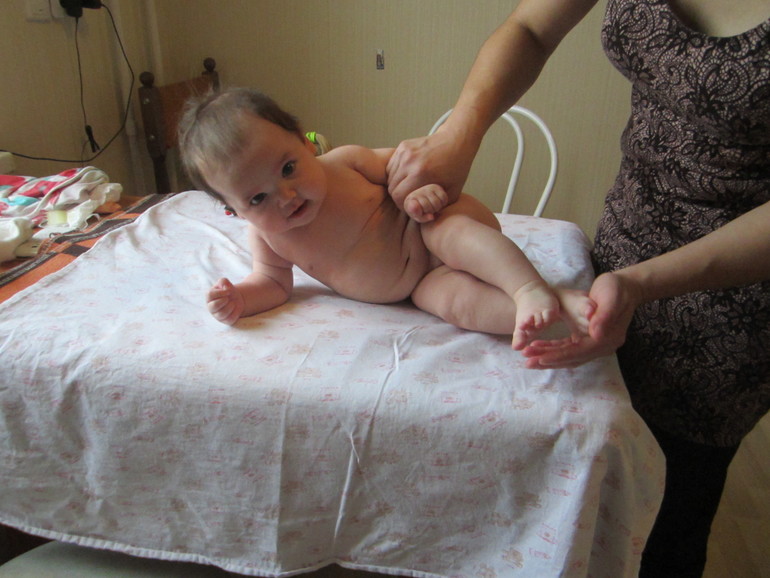 МассажСегодня закончили курс массажа у замечательной девочки, хорошее всегда быстро заканчивается (( Ева очень полюбила эту процедуру, правда под конец трудится совсем ей не хотелось, отчего сильно ругалась и пыхтела! Ножки у нас ползать не хотят,зато вставать на них самое любимое! Ручки упорно не желают работать,ну ничего, скоро всему научимся! Шея заметно расслабилась, уже крутим в обе стороны лежа на животе без проблем! Вообще тонус сняли практически, теперь будем сами деточке помогать: ваннами и массажиками! ВОТ И МЫ НА ТРЕНИРОВКЕ)