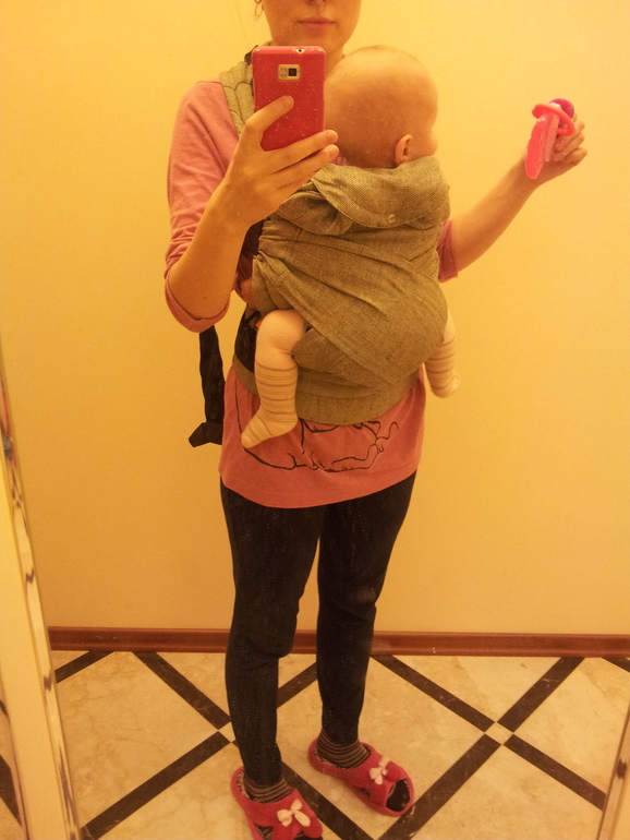 Этот рюкзак можно носить с 4 мес, т.к. он шарфовый, там такая же посадка как и в май-слинге. Рюкзак фирмы гусленок серия комфорт, удобный, но когда долго носишь жарковато, но у нас дома тепло. я хочу май-слинг и слинг-шарф, поносить и понять что мое.