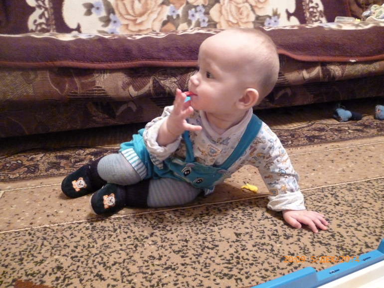 Физическое развитиеУф.третий день пытаюсь написать пост))))))только напишу,остается только фотки выложить.то маленький не дает,то еще что нибудь.........ладно думаю,чуть позже допишу... через какое-то время подхожу, дети уже успели мою страницу выключить))))))и так 2 дня подряд!!!!!ну да ладно,и так к сути......... 5 декабря нам исполнилось 8 месяцев ....и мы заболели,ну как так то аааа????все было хорошо,только в среду были на приеме у врача,нас взвесили,послушали и ничего ведь не было,а через день температура 39.бедный мой малыш,ему было так плохо,и так продолжается 3 дня.даю нурофен 3 раза в день.и виферон ставлю,а симптомов никаких нет .ни соплей,ни кашля слава богу,может зубки.как думаете??????? Так вес наш составляет 9100 кг,рос примерно 75см,в общем очень активный и общительный ребенок растет!!!!Очень любит братьев,прям очень,ну папу это естественно,так же нас радуют бабушка с дедушкой))))))))))много балтает,баба,паппа,мама,говорит мям-мям,когда хочет кушать,понимает,что его просишь.Спрашиваешь где тот или иной предмет,он смотрит именно на этот предмет!!!!!ну слогов много разных говорит,всех не повторишь!!!!!!Кушаем практически все ,что есть на столе,так же кушаем детские каши,пюрешки,кефир,ему все нравится.еще ни от чего не отказывался)))))ттт.аппетит хороший!!!!!!!!! Из умелок-научились ползать на четвереньках,сейчас только и успевай его ловить)))))),встает у опоры и главное сразу руки отпускает.как будто может и без них стоять))))))часто падает или ударяется,плачет жалко так,но мне то же приходится и кушать готовить и со старшими уроки делать(((сидеть сам еще не может.может но не надолго,заваливается на бочок,а так присаживается на один бочок,опираясь на другую руку!!!!Люблю его!!!!!!!!!!!!ну и немного фоток!!!