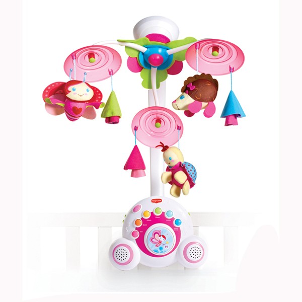 Мобиль Tiny Love Бум-бокс, серия Принцесса Тини. Очень нравится, дочка начала обращать на него внимание где то с 1 месяца и по сей день, правда сейчас уже сама выбирает себе мелодию, нажимает, думаю когда начнет вставать, оторвёт с него все виселки)))
