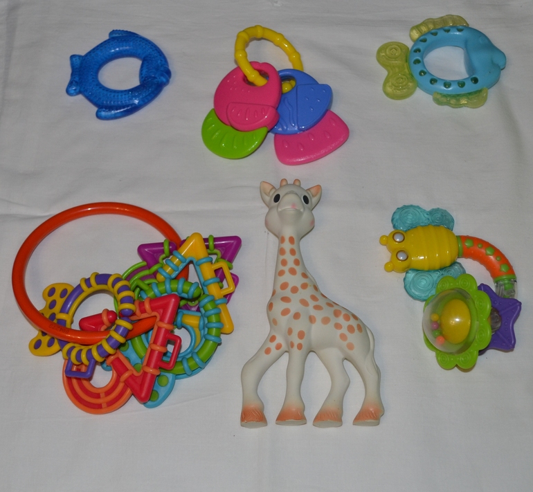 Прорезыватели. Из всех пользуется спросом угадайте кто? Естественно жирафик))) Ну и еще стрекоза с солнышком)