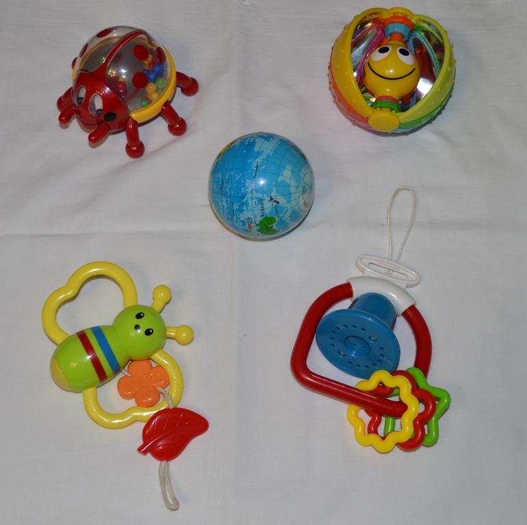 Разное. Вот кстати бабочка и колокольчик, вроде вообще непонятно что это такое, мне кажется они вообще с другого какого то мобиля, но на коврике Дашуля в основном с ними только и играла, они легкие и в рот хорошо помещаются)))