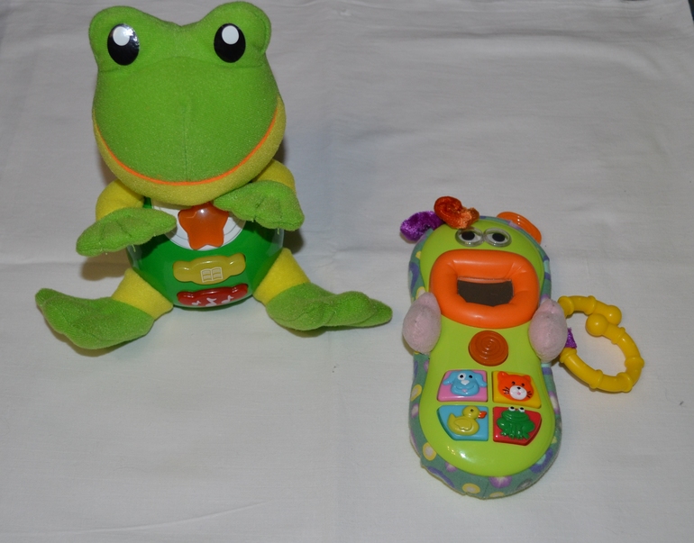 Музыкальные. Лягуха появилась в 5 месяцев, она рассказывает стишки А.Барто, поёт песенку "От улыбки" и проигрывает 5 разных мелодий. Очень спасает, когда Даша уже хочет спать и конючит, а я проветриваю окно в комнате, минут на 5 заинтересует))) Телефон вообще прикольный, тихий ненавязчивый звук, играет мелодии и издаёт звуки нарисованных животных, колечко используется также как чесалка дёсен)))