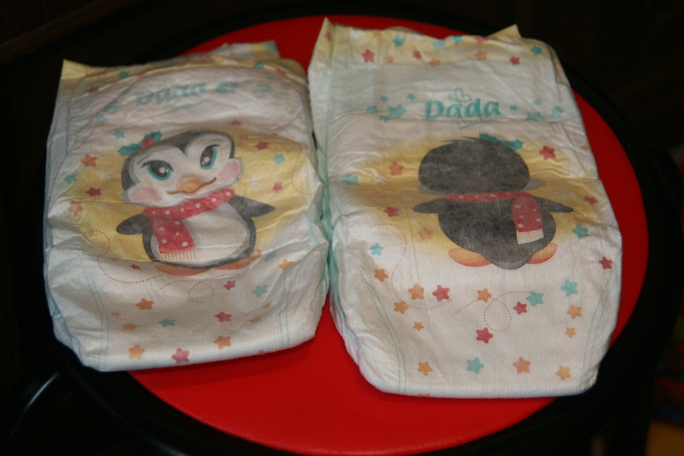 ну и самое интеренсое.. купиа малому новогодние памперсы Dada .. мегапак идет в большой картонной коробке, из которой делается домик новогодний и сами памперсы в новогоднем оформлении(перед и зад)