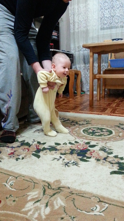 Начну с цифр - рост у нас сейчас 68 см, ну а вес- 6 400. А родились мы с весом 2 450 и ростом 47 сантиметров. Так что вроде бы все в в норме.