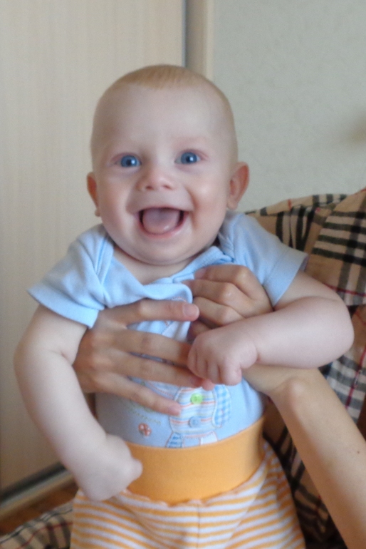 Сынок у нас - очень улыбчивый ребенок, улыбается почти всегда и всем. Особенно любит дедулю (папу мужа).