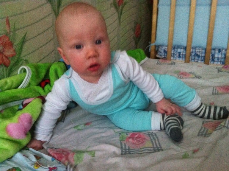 Вообще, Макс такой классный уже становится. Может взять подползти, за ногу схватить. Или если на диване валяемся, то подползет, головой уткнется в меня и лежит, улыбается, такой милый))