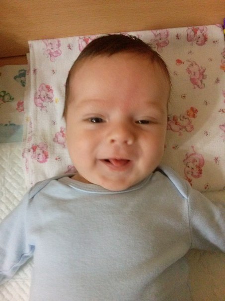 На приёме были 4 числа. Вес 6 кг (+950 гр) рост 61 см (+4 см). Вырос ого-го как! Мама моя, видя его 1-2 раза в неделю, оочень замечает изменения. В полтора месяца была первая осознанная улыбка мне в глаза. Теперь же маму без беззубой улыбочки не оставляем) активно гулит около двух недель. "Разговаривает" мало с кем, в основном, со мной.