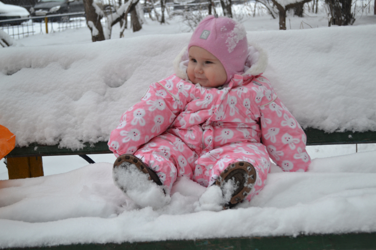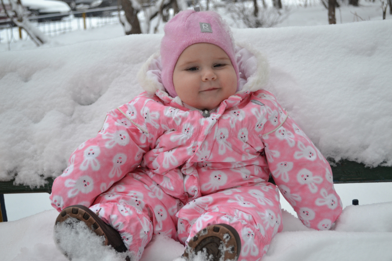 спасибо!)в парк уже давно не ходили(( у нас такая беда с гуляниями последний месяц — если не спит, то орет! только на руках. это ее одежда бесит)) уж очень она активная, а тут не пошевелишься(( поэтому гуляем либо в комнате с настежь открытым окном (в коляске спит), либо гуляем в ее сон, но далеко от дома не уходим (одной оч тяжко и коляску толкать, и мою толстомясую в комбезе нести)жду, пока этот ужас кончится! а сегодня просто на ручках выходили познакомиться со снегом и в магаз)спасибочки! комбез Керри))) ботиночки отданные, не знаю, зимние ли, на всякий пожарный надела под них утепленные носочки еще — стоять же!)))) р-р 20-21, но мы их не надеваем, когда в коляске выходим, там комбез закрывается!
