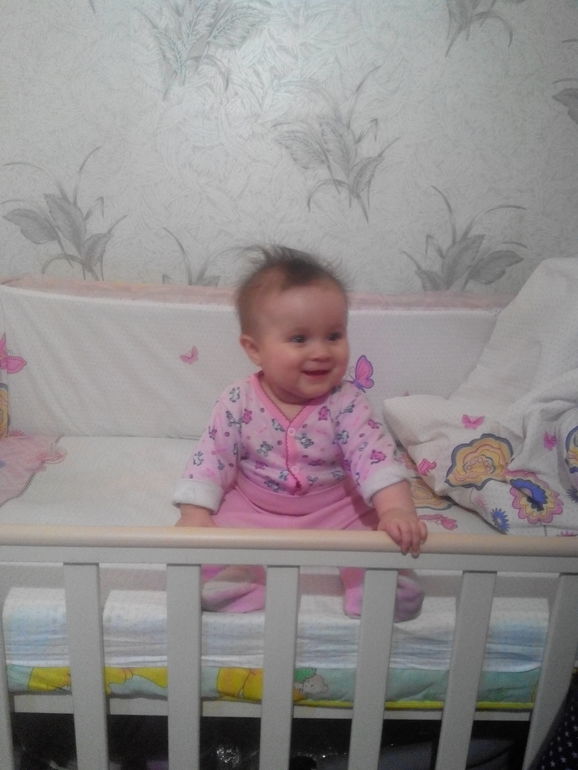 Умничка красавица!! Растите здоровенькими. Только я немного удивилась, что у вас кроватка на нижний уровень еще не опущена. Мы опустили сразу как начали на четвереньки приподниматься, а то блин он вечно пытается сбежать из кроватки))))