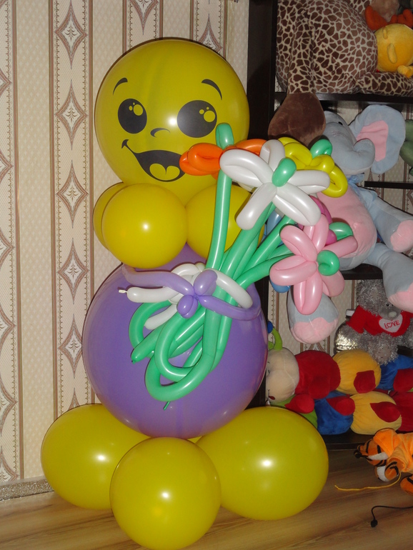 Спасибо. Они связанны.В "туловище " перед накачкой поместили бусинку, ее завязали - получился этакий шарик с 2я хвостиками... нижний привязан к основанию, верхний с "головой "крепиться. А чтобы она (голова) не болталась сделали "шею ". В гугле забейте, мастер класов на ютубе море :) удачных творений Вам.
