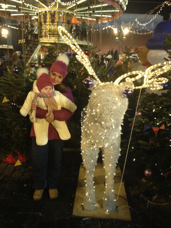 Я не самый большой любитель массовых гуляний, но думаю мамочки меня поймут, гулять вокруг дома надоедает. Народу конечно там целая куча, место для парковки искали почти час, если ездишь не впервые, то припарковаться получится быстрее, так как в процессе гуляния, мы нашли всякие кармашки, которые не видно с улицы. Увиденное поразило Еву, столько подсветки она никогда не видела, смотрела по сторонам во все глаза. Увидела даже деда Мороза, но он ее не впечатлил.
