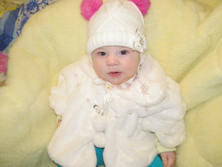 Наши умелки. Мы уже освоили ноутбук))))), когда видит что я что-то печатаю и ей сразу надо это делать, кричит и тянет ручки , что-бы я ей дала с ним поиграть, любит бить по кнопкам и играть с мышкой, имитирует меня, маленькая повторюшка, купили детское пианино, что-то не то, с ним ей не очень интерестно. Когда она сидит у меня на руках и в нашу комнату заходит бабушка ,она её завет протяжным о-о-о и тянет к ней ручки, иногда мне начинает казаться, что она уже всё понимает, только сказать не может.)))))) Хорошо играет с игрушками, перекладывает из руки в руку, злиться если что-то лежит далеко и она не может достать.Отлично высовываем соску изо рта, назад тоже попадает, но не всегда))) Вчера мы встретили наш первый Милашкин Новый год. Встречали чисто в семейном кругу я, муж, моя мама и наше всеми любимое счастье- Милана. Всё было супер, малая не капризничала и вела себя как взрослая девочка))), очень внимательно слушала поздравление президента))) , спать лягла в 00ч 25мин. Мы очень довольны её поведением, в такие моменты начинаешь понимать, как быстротечно время , растёт детка!!!!!