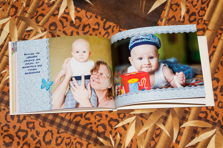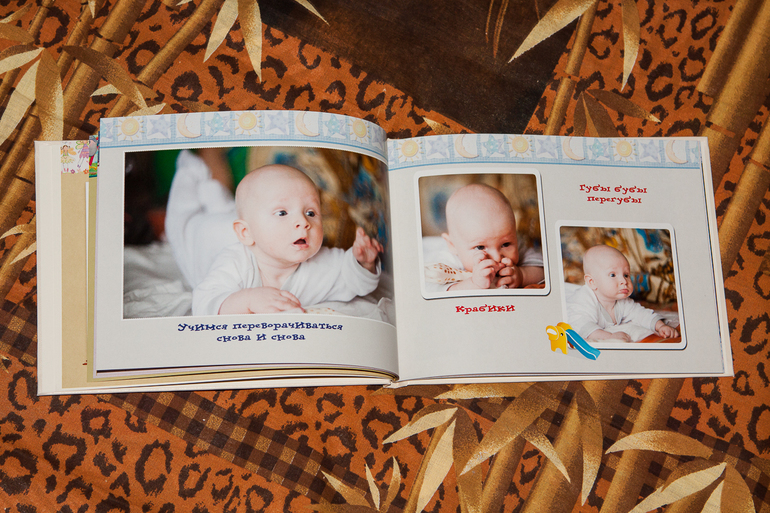 Еще на полугодие заказала ему фотокнигу, я еще с рождения решила что каждые наши пол года буду вести фото отчет. :) Печатали в Netprint, всем советую, очень понравилось :)