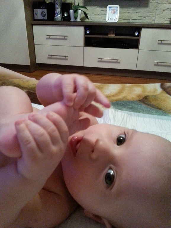 Вот решила выложить немного фотографий моего Димочки! Писать особо не о чем...Новый Год прошел, отмечали его дома втроем. Покушали с мужем, немного телевизор посмотрели, да и спать легли. Сынуля речь президента проспал))) Мы растем, с каждым днем все интересней и интересней с сынулей. Очень любит "разговаривать", улыбаться, смеяться. Обожает свои ножки, держит их ручками и пальчики на ногах сосет) Сам вытаскивает соску изо рта и обратно вставляет, правда иногда не получается, тогда мама приходит на помощь. Кушаем только мамино молочко, каждые 2-3 часа, ночью и чаще бывает...скоро к врачу на плановый осмотр идти, потом отпишусь какие у нас новые замеры так сказать. Ну и как всегда немного фото) Я на фото без макияжа, так что не судите строго