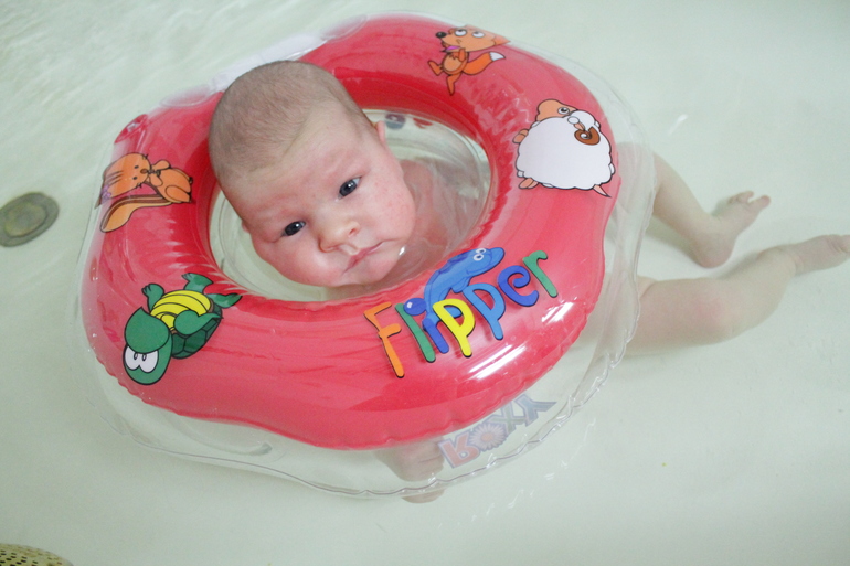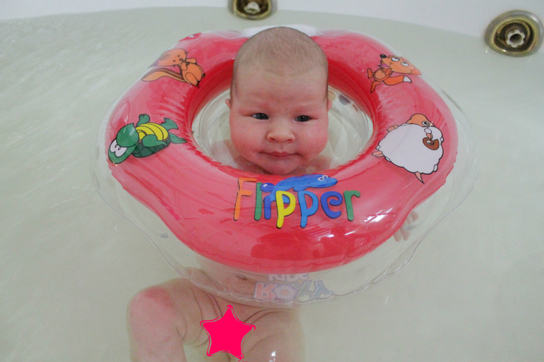 Еще мы перебрались в большую ванну, к слову доче с кругом больше нравится купаться, махать ручками и ножками...простор... Чем в маленькой ванночке. Бултыхается в ней минут 30, потом кушаем и спатки, сладко сопя на пузике)))