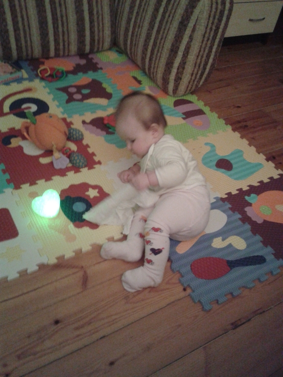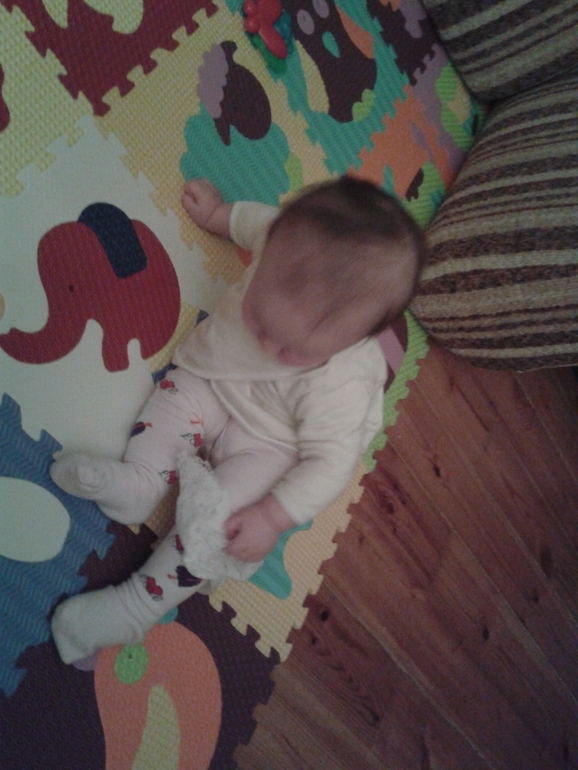 Вообще:))) она еще так плавно из этого положения на спину или на живот перемещается, я все боюсь ударится, а она молодец:)