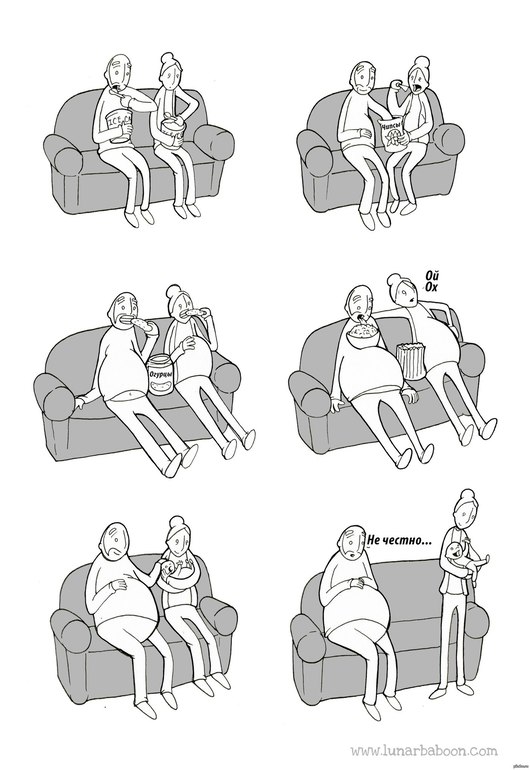 У меня муж в принципе весит в 2 раза больше меня)) даже последнее время поднабрал - я до Б 55, он 115))) сейчас вот потихоньку растем с сыночком, округляюсь, но вес и пузень не догнать))) на беременной фотосессии с первым сыном так и фоткались - я и муж пузами мерялись))) а стимула похудеть у него как-то нет.. И не похудеет сильно - высокий, кость широкая, широкоплечий.. Но да, было бы неплохо двадцаточку как минимум скинуть))