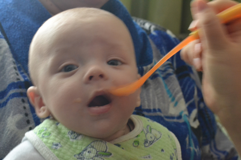 Мы ввели прикорм. Кушаем Гербер, баночную цв. капусту и сегодня пробовали брокколи. Ест с огромным удовольствием, рот открывает только так. Ттт
