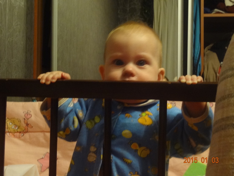 Мой шустрик встала почти в 7 месяцев,хорошо что дно кроватки заранее опустили)
