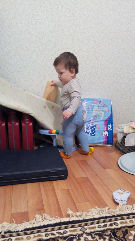 Дальше будет много букв насчёт сына и вообще материнства)) что-то захотелось высказаться)) итак,что мы имеем к 10 месяцам. 4 зуба. 2 верхних вылезли в 10 мес и 2 дня и 10 мес и 4 дня. Встаёт,садится без опоры,пробует ходить,но пока боится. Вернее,когда он находится рядом с детишками,которые уже ходят сами, то пробует тоже ходить,у него просыпается интерес к такому способу перемещения,а когда долго без гостей,то ползком ему удобнее и быстрее. За ручки ходить любит,за 2 ручки бегает))) с руками все не серьёзно, т к. он знает,что не упадёт. Помогает мне его одевать)) просовывает ручки в рукава) вернее выпрямляет их,когда я засовываю в рукав))