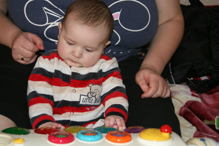 недавно мы приобрели ему пару чиковских музыкалок - среди них развивающий столик