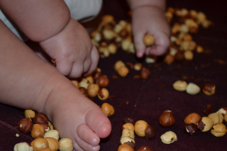 Сенсорика и моторика. Фундук, шарики для ног и нут