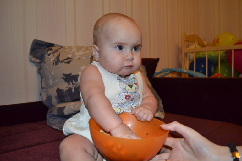 Удивительно умная у вас Настасьсергеевна, и взгляд такой.. ээ, президентский.. После ваших фото пыталась дать дочке тесто — она испугалась. Шариковый пластилин — только в рот. Сейчас притащила ей горох — перевернула миску и уползла :(