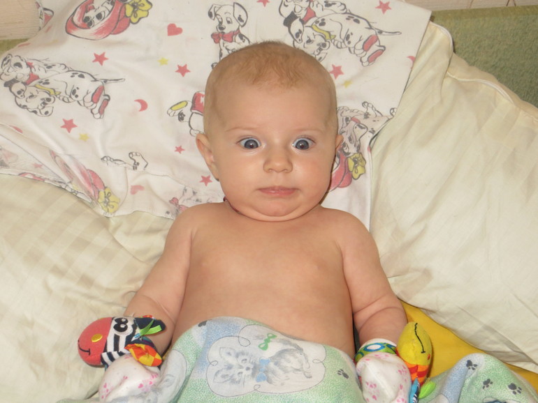 ХвастаемсяВот уже и позади 3 месяца. Мы бодры и веселы, Ксю много улыбается и потихоньку начинает смеяться, особенно когда я щекочу ее волосами. Наконец-то покрестили ее, я очень переживала, многое не складывалось, но в итоге все прошло отлично, даже нас родителей пустили на таинство, я рада. Вчера прочитала, что начинается золотой период малыша, ребенок спокоен, режим есть, колики не должны беспокоить, зубы еще не лезут. Но чего-то это наверно не про нас, ночью она до сих пор спит непоймя как, может и каждый час просыпаться, ощущение разбитого состояния меня до сих пор не покинуло. И наша тошнота вечная, не могу уже. Сейчас врач сказала убрать из моего рациона все молочное, если через 2 недели не улучшится будем смесь антирефлюксную вводить. Видимо наверно придется прикорм пораньше ввести, хотела в 6, но если так и дальше будет продолжаться введу в 5. Рост 62 см., весим 5500. Гуляем каждый день по 2 часа и в морозы тоже. На улице спит замечательно. Начала постоянно сосать пальцы до красноты, поэтому теперь ходим в царапках.