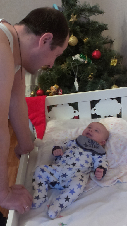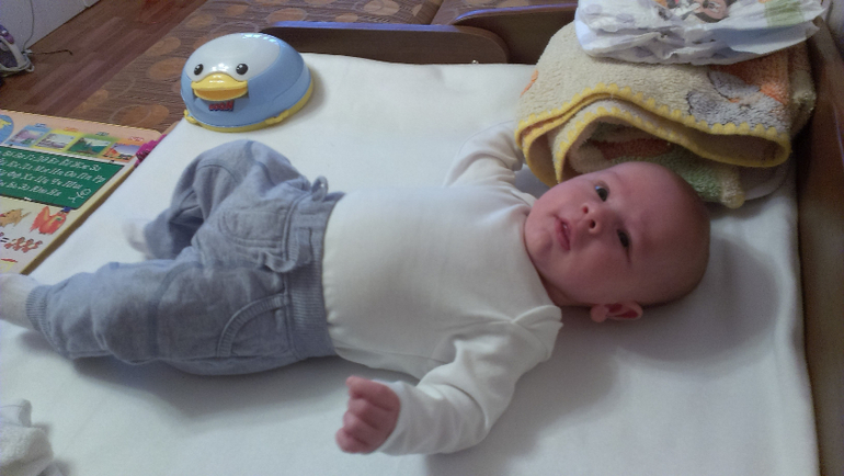 Вес-6505(+1540кг.);рост-60,5(+3,5см.)Кушаем сисю.Сегодня (15.01.14)мой сын впервые засмеялся в голос))).С озорными глазками слушал мои речи,поддерживая разговор своими гулениями и сопровождая улыбками и я поняла ,что засмеётся и ждала-ждала и он оправдал мои ожидания)))Котёночек мой