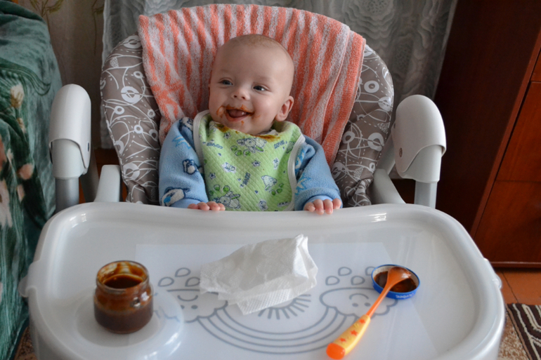 Мы начали с брокколи и цветной капусты, кабачок не хочет ни домашний, ни баночный(( может в ассорти потом пойдета вот того, что он так будет есть чернослив (я снимала видео, он после того, как проглатывал ложку стучал ладошкой что давали следующую))), даже свою любимую цв. капусту он не с таким энтузиазмом ест:) С недели попробуем яблочко:)