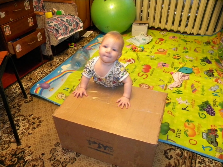 И мы ждём посылочку с книжками)) А наш тоже не очень оценил шарики, накидала в манеж, так он в них падал))) пока убрала..выдала один шарик Косте и один кошкам, парочку в ванну забрали))