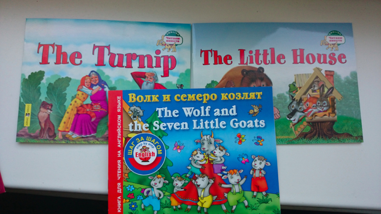 Взяла, чтобы ребенок немного приучался к английской речи, думаю, с этой функцией они справятся. Сегодня читала, мелкому понравилось. Все 3 читаются минут за 15. Это с чувством, с толком, с расстановкой.