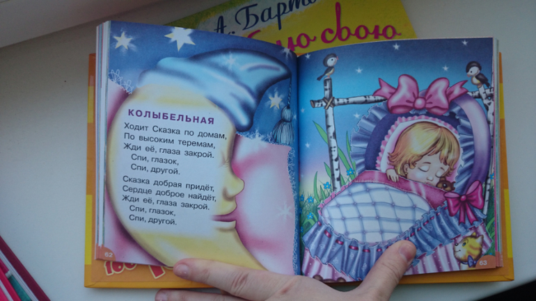 Нижний - Агния Барто, купили с мужем. Читаю редко, потому что стихи какие-то у нее депрессивные. И вообще я ее не люблю. Зачем взяли, не знаю.