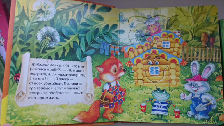 Эти книжки брала не столько для чтения, сколько дитю на развлекуху. Пока только их (и мягкую) даю в руки, страницы очень плотные, не порвет, не порежется.