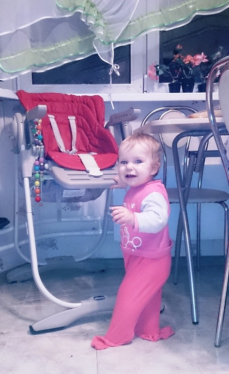 Кушает и пьёт всё, за исключением творога, который мне почему-то лень ей давать: овощи любые, мясо любое, фрукты любые, соки любые, каши любые. На очереди рыба. Печенья и хлебные корочки почему-то не впечатляют Свету совсем. Смесь тоже вполне себе едим пока раза 2-3 на дню, и на ночь тоже.
