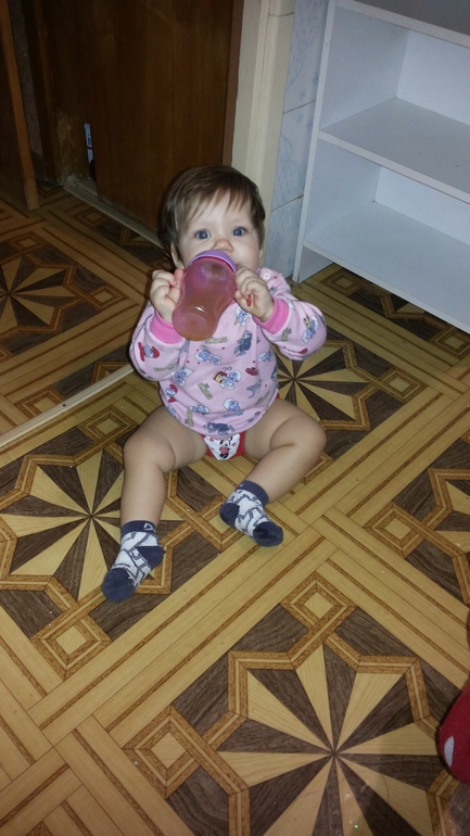 И кстати она ну очень любопытная только и успеваешь ее от ящиков отводить Настя такая не была, ну и конечно самое любимое занятие это танцевать стоит ей услышать музыку как попа начинает дергаться.