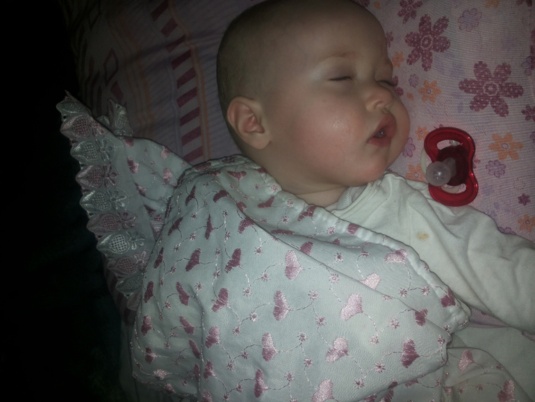 Спит пока с нами. Когда дочка болела я ложила её рядом, чтоб хоть как то поспать, потому что она просыпалась и всплакивала через каждые 10-15 мин. А теперь привыкла и не хочет спать в кроватке. Не знаю теперь как отучить.