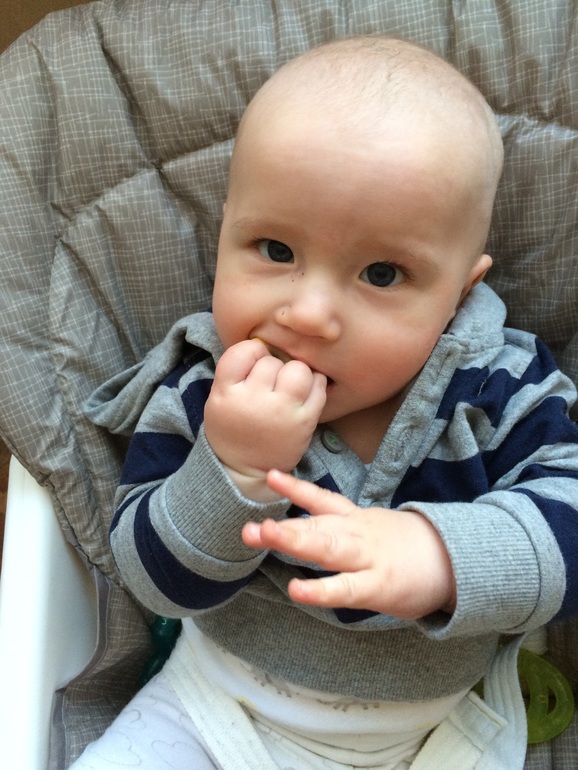 А так у него еще нереальный пищевой интерес появился, все пытается со стола что-нибудь в рот пихнуть.